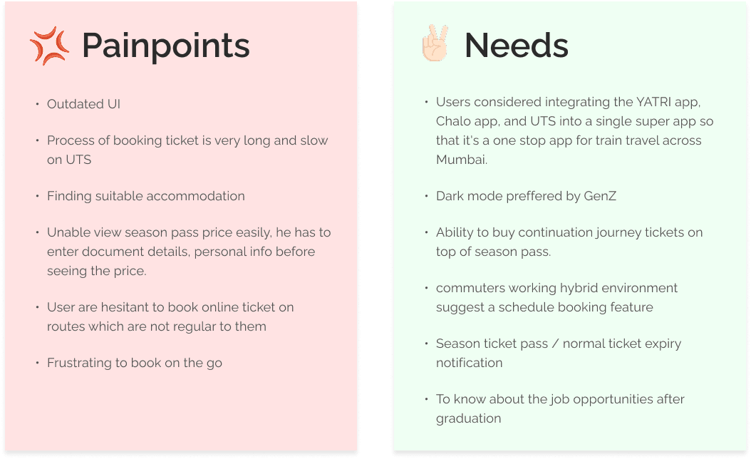 Interviews with commuters revealed not only their practical needs but also their emotional and physical state while travelling.